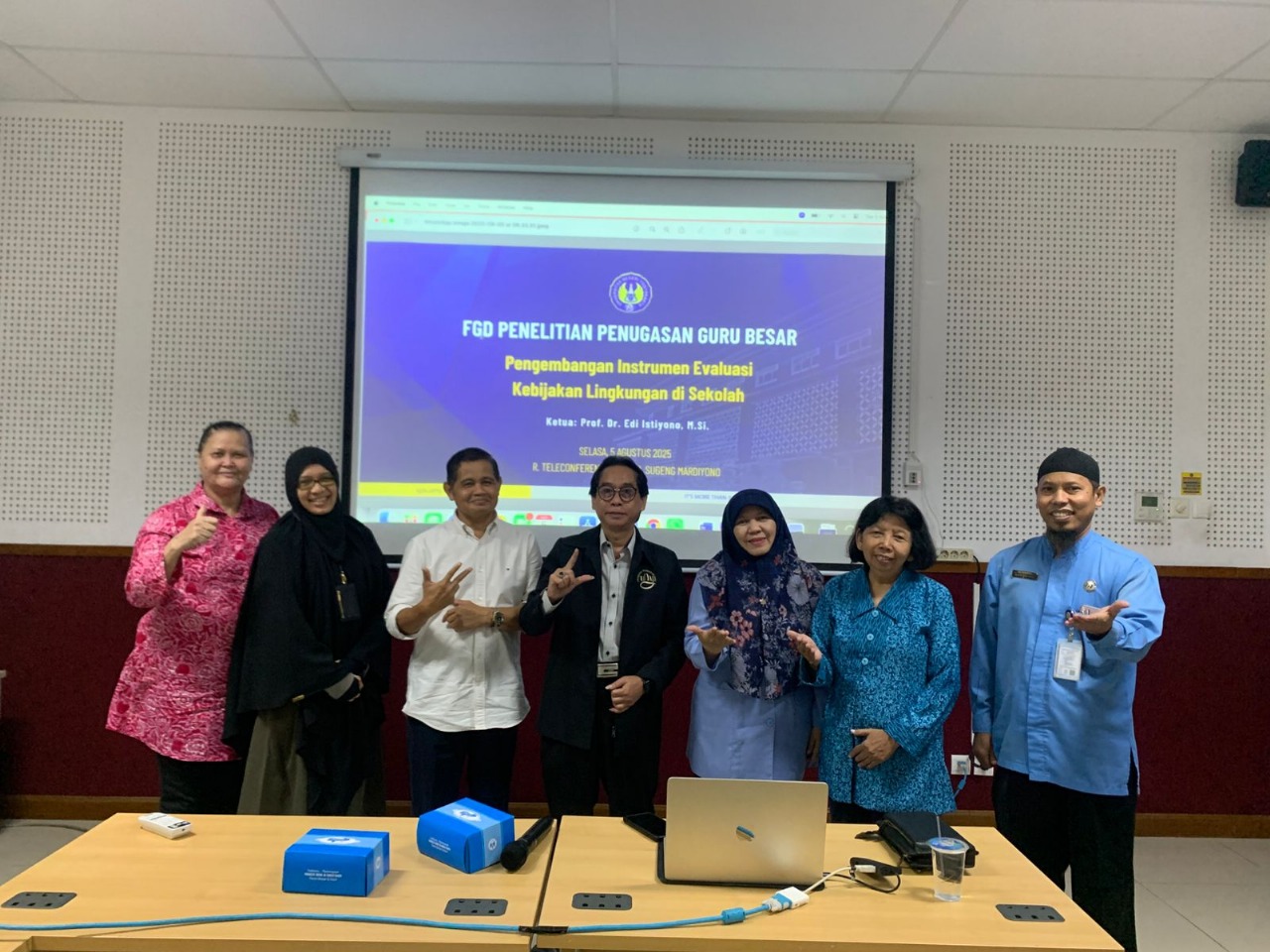 Selasa, 5 Agustus 2025, Sekolah Pascasarjana Universitas Negeri Yogyakarta (SPs UNY) menyelenggarakan kegiatan Focus Group Discussion (FGD) Penelitian Guru Besar dengan tema “Pengembangan Instrumen Evaluasi Kebijakan Lingkungan di Sekolah.” Kegiatan ini berlangsung di Ruang Teleconference Lantai 2, Gedung Sugeng Mardiyono SPs UNY, dipimpin langsung oleh Prof. Dr. Drs. Edi Istiyono, M.Si. selaku ketua peneliti.